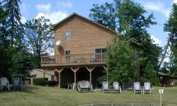 The Lake House is a beautiful 1-1/2 story unit right off the beach. It has carpeting in living room and all 3 bedrooms, a large deck overlooking the beach, 2 full bathrooms with shower stalls. The main bedroom has 1 king bed and there are 2 upper bedrooms, each with a queen bed. The sleeping loft hosts 4 twin beds and the living room has 2 log futons for additional sleeping. The House kitchen hosts a dishwasher and the living room has a electric fireplace.